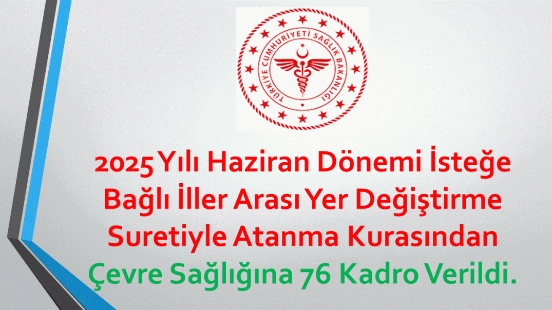 2025 Yılı Haziran Dönemi İsteğe Bağlı İller Arası Yer Değiştirme Suretiyle Atanma Kurasından Çevre Sağlığına 76 Kadro Verildi.